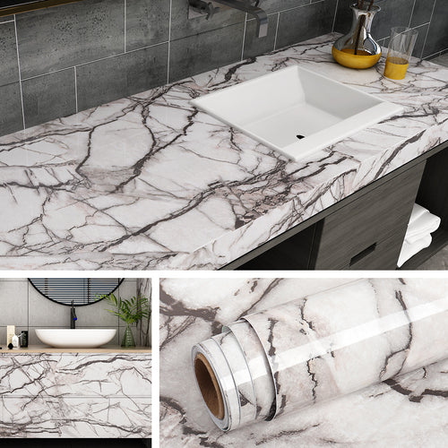 Livelynine Marble Wall Paper Kitchen Countertop Peel and Stick Wallpaper Marble Paper Self Adhesive Vinyl Roll for Bathroom Counter Dining Table Desk Furniture Renovations