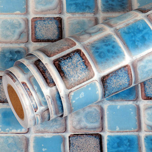 Livelynine Waterproof Wallpaper for Bathroom Shower Wall Decorative Contact Paper Self Adhesive for Furniture Stickers Kitchen Backsplash Tiles Peel and Stick Counter Removable Blue Mosaic