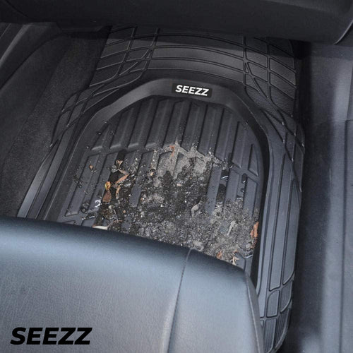 SEEZZ 2 Piece Front Car Floor Mats Black FlexTough Contour Liners-Deep Dish Heavy Duty Rubber Floor Mats for Car SUV Truck Van Universal Trim to Fit
