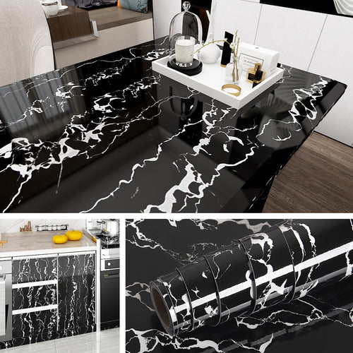 Livelynine Black Marble Wall Paper for Kitchen Counter Top Covers Peel and Stick Wallpaper Bathroom Granite Contact Paper for Countertops Desk Table Cover Old Furniture Sticker