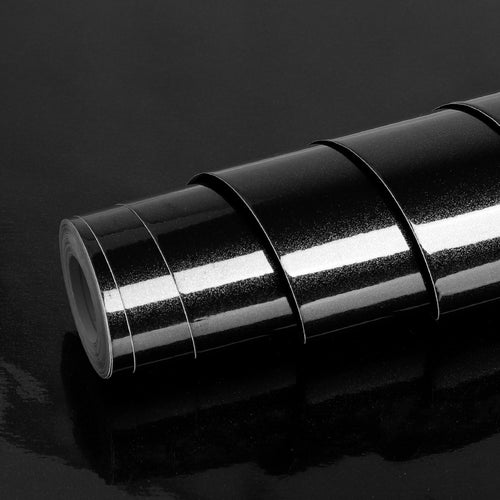 Livelynine Black Contact Paper Self Adhesive Kitchen Wallpaper Peel and Stick Modern Bathroom Cabinet Vinyl Wrap Glossy Black Wallpaper Waterproof Sticky Desk Dresser Counter Top Cover